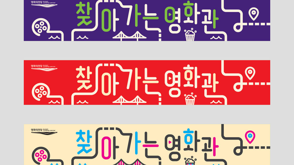영화의전당에서 진행한 "찾아가는 영화관" 홍보물 디자인에 참여하였다. 퍼플+그린의 보색조합으로 시선을 끌도록 하였으며, 행사의 주제인 영화, 영화관의 요소들을 활용하여 아이덴티티가 강조되도록 표현한 디자인이다.